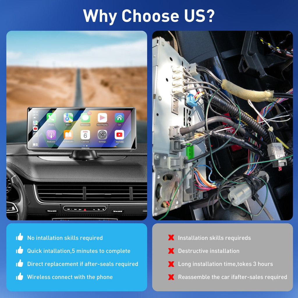 Upgrade your car’s entertainment and navigation with this 10.26-inch 2K Portable Wireless Apple CarPlay & Android Auto Touch Screen Radio. Designed for effortless connectivity, superior sound quality, and enhanced safety features, this car radio is a perfect addition to your vehicle.
