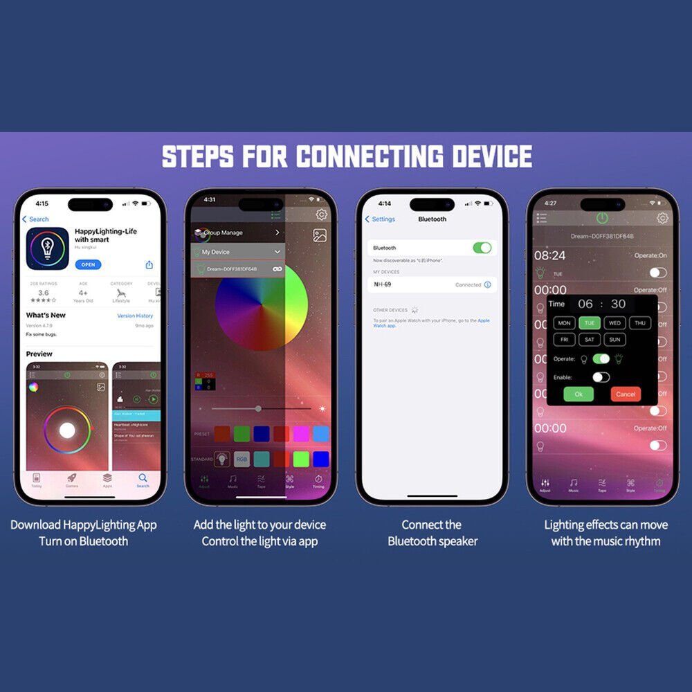 4. Night light and bedside light: Control the light through the Happy Light APP, which can be infinitely dimmed (0-100%), which can produce a soothing light effect to help you relax your brain and get ready for sleep. Through the buttons of the product, you can adjust 5 levels of light brightness, 16 million colors and 256 light modes for sleep, meditation, reading, relaxation, etc.;