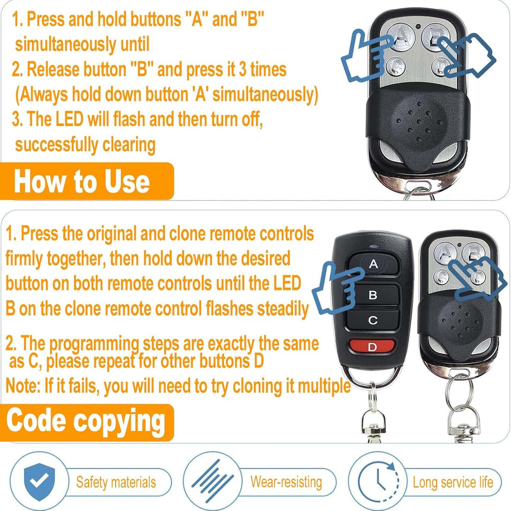 Upgrade your garage access with this 2 Pack Universal Garage Door Remote, designed as a reliable replacement for lost or broken remotes. Supporting up to four garage doors, it operates on a 433MHz frequency with advanced rolling code security to prevent cloning and ensure safe entry.